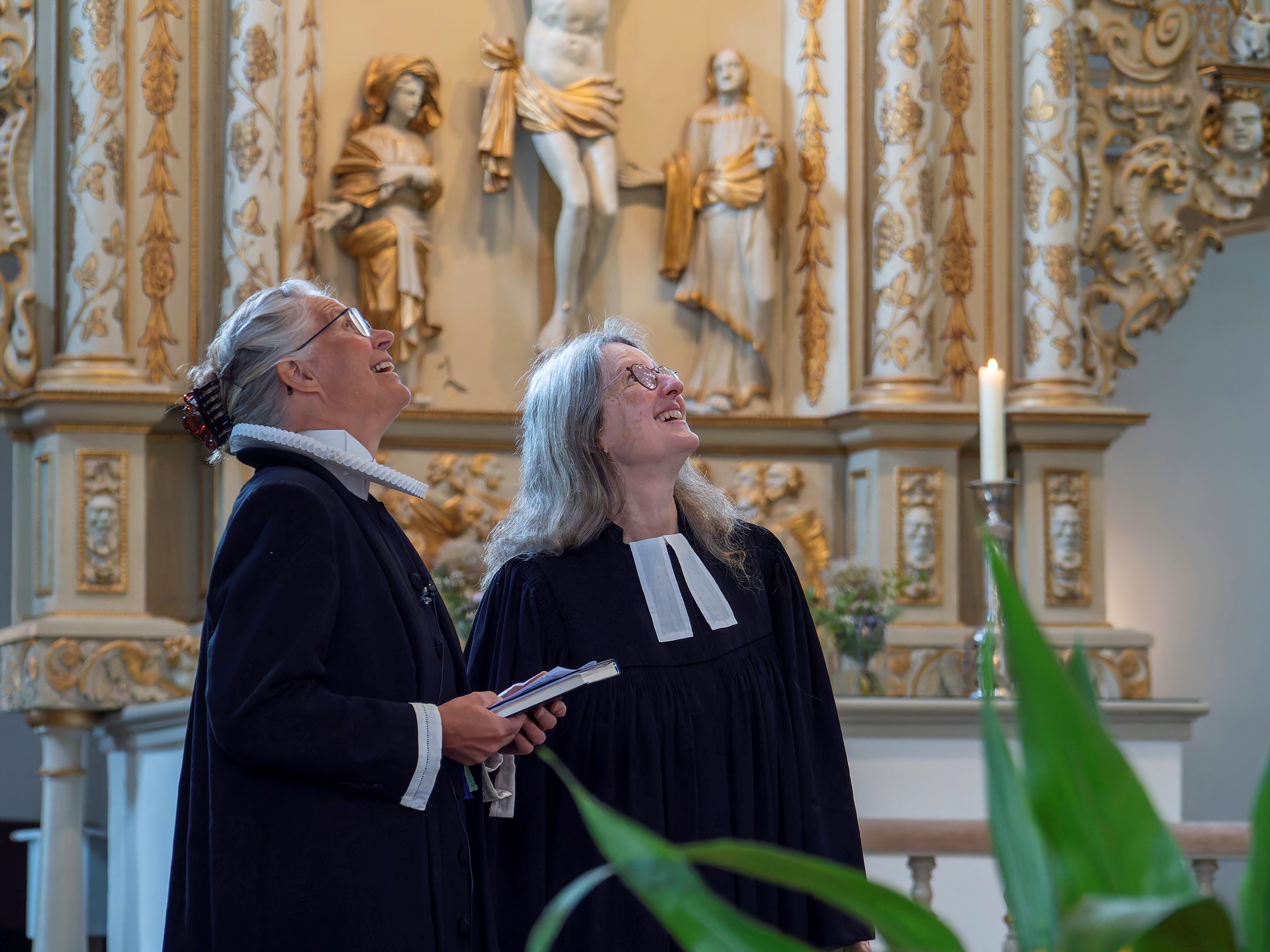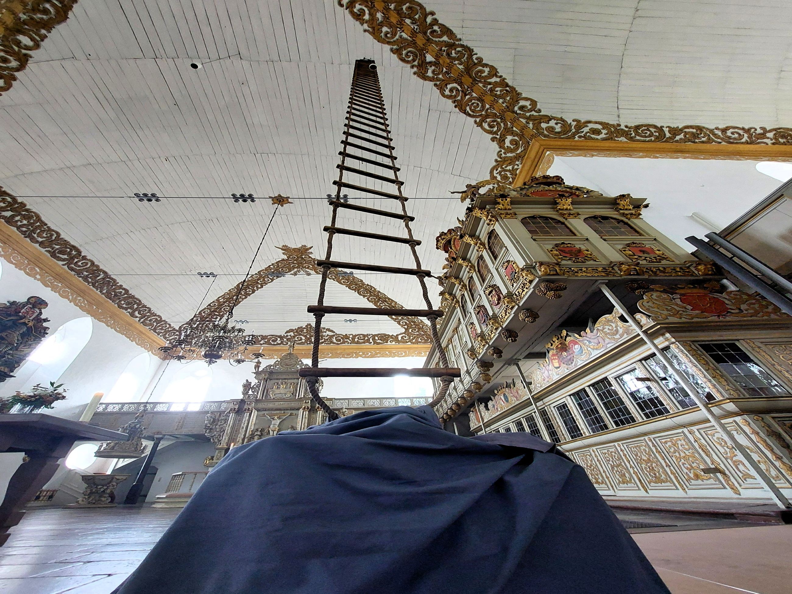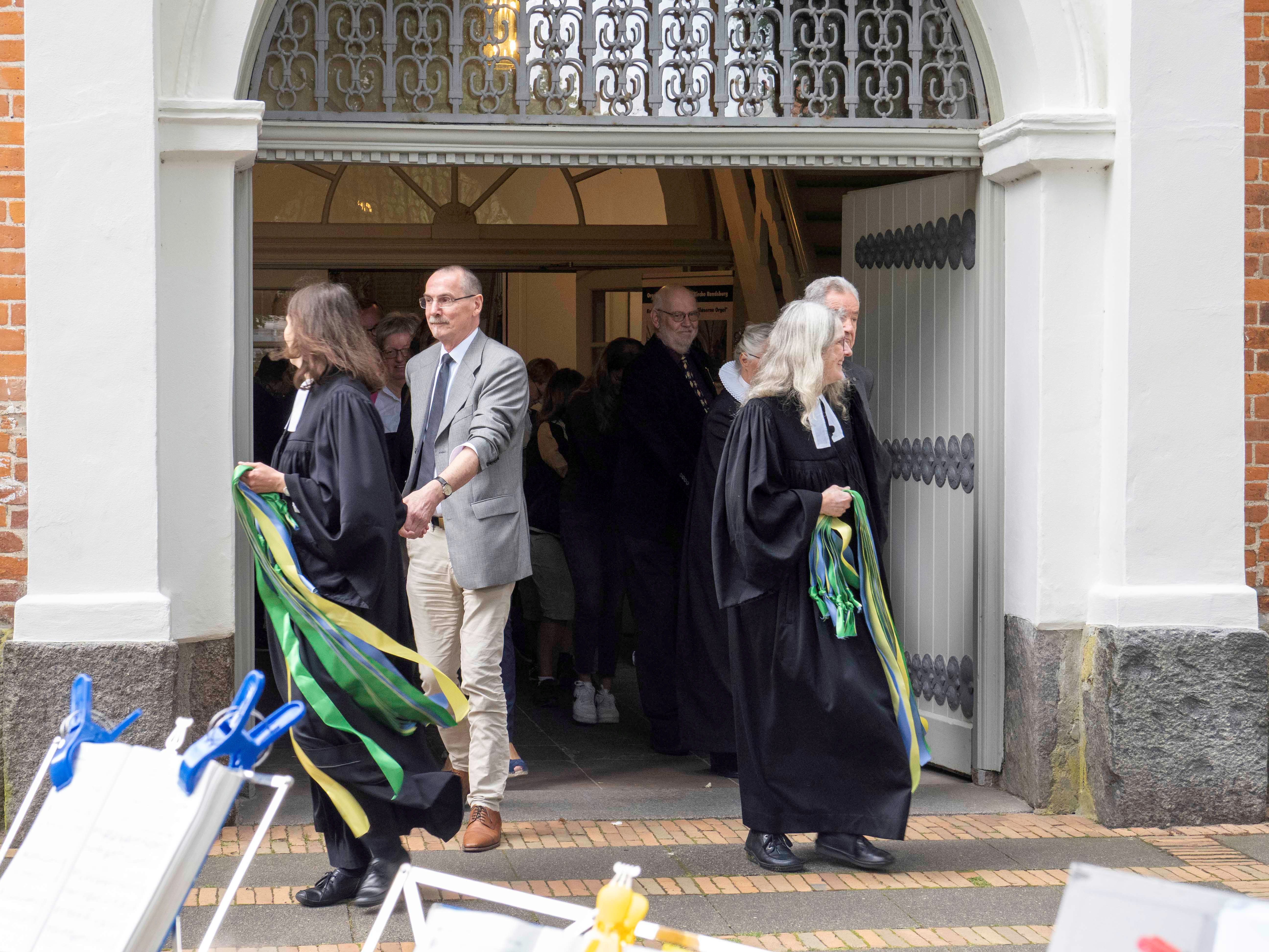 Unter den zahlreichen Besucherinnen und Besuchern waren auch Bürgermeisterin Janet Sönnichsen, Stadtpräsident Thomas Krabbes, Propst Matthias Krüger und Gemeindereferentin Ulrike Imbusch von der katholischen Gemeinde. Wo sie in der Christkirche manchmal „die Pforte des Himmels“ finden, erzählten im Gottesdienst drei Menschen aus der Gemeinde: Die Leiterin der offenen Christkirche, ihr Vorgänger und eine Jugendliche. Eine Leiter, die bis in den Christkirchenhimmel ragte, symbolisierte das Gesagte. Der Text über Jakob, der die Himmelsleiter schaut, war schon vor 325 Jahren Predigttext, als die Christkirche eingeweiht wurde. Der Gospelchor Rendsburg-Büdelsdorf und die Rendsburger Gemeindekantorei sangen unter der Leitung von Marius Branscheidt, an der Orgel war Kirchenkreiskantor Volker Linhardt zu hören. Die Pastorinnen Ulrike Brand und Janina Boysen gestalteten den Gottesdienst zusammen mit der Pastorin der dänischen Gemeinde Cecilie Brask.
