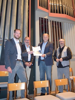 Freuen sich über den Startschuss für das Projekt (vlnr): Timo Neumann vom LLnL, Stadtpräsident Thomas Krabbes, P. Rainer Karstens, P. Karsten Struck